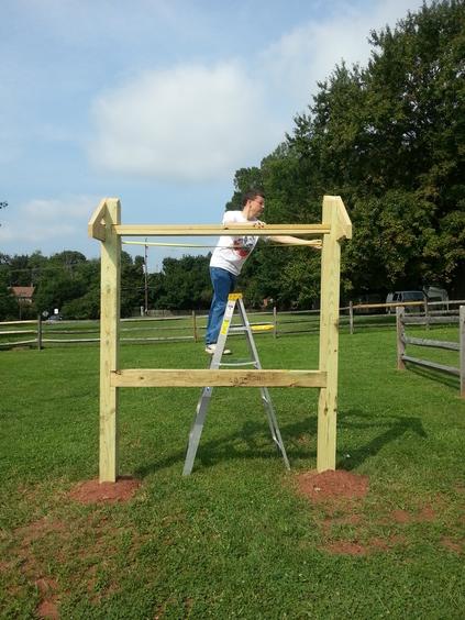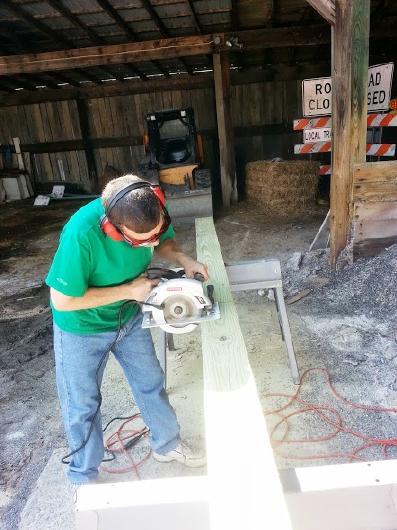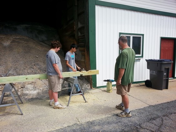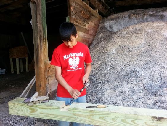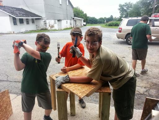 Scouts are not allowed to use power tools, so preparation for this part of the project involved adult help.