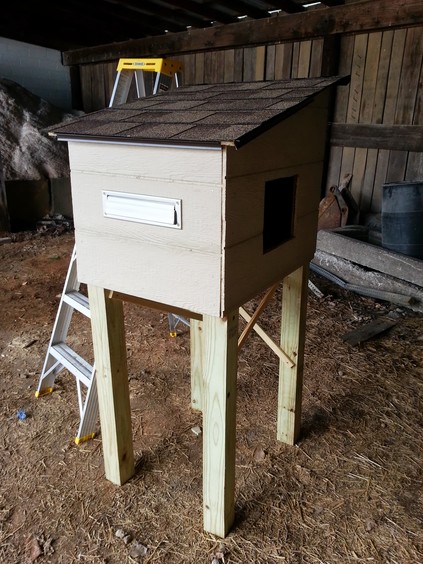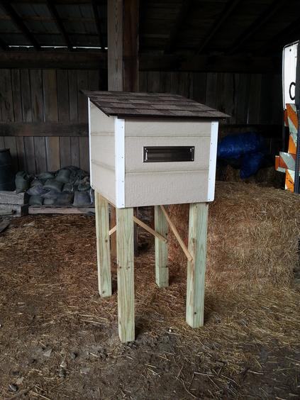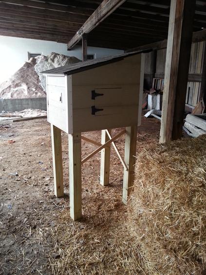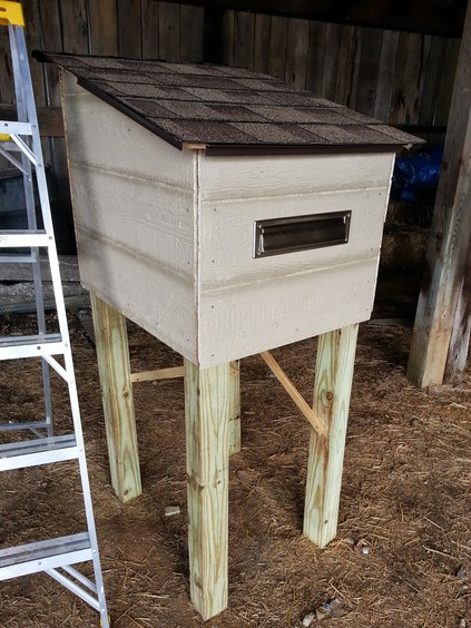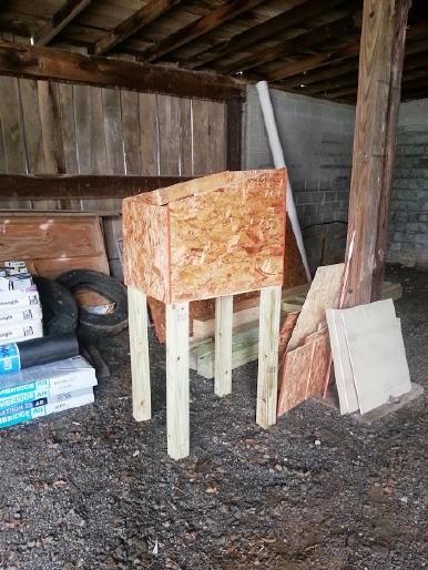 ![]() Corner pieces needed. | ![]() Corner pieces added. | ![]() Door and hinges on, hasp needed. |