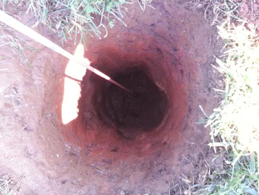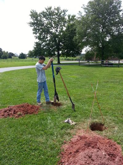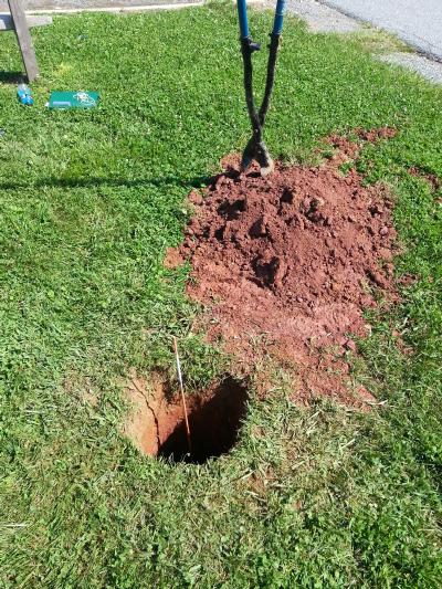 ![]() First post hole. | ![]() Digging to China...well, 3.5' the way there. | ![]() Jonathan starting second post hole. |