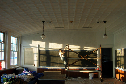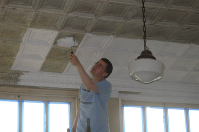 ![]() With help from New London Freemasons, 1st primer coat on ceiling done! | ||