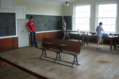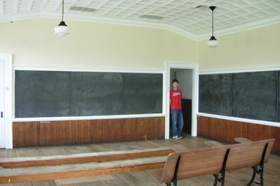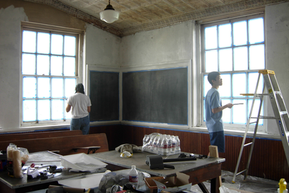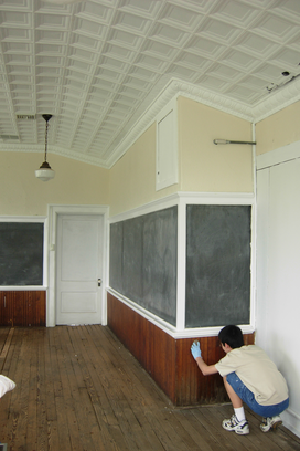 ![]() Nathan washing wainscoating. Graffiti removed from blackboards. | ||