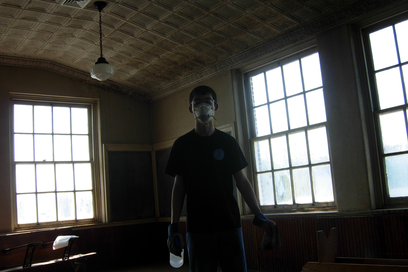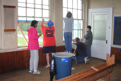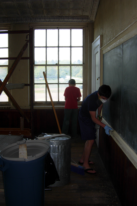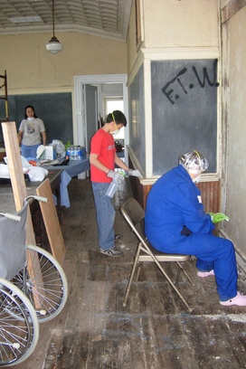 ![]() Nathan rinsing walls after scrubbing | ![]() Ms. Hsi, Mrs. Loftus, Eric, JP, & Jonathan | ![]() Mr. Davies scrubbing walls |