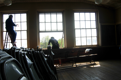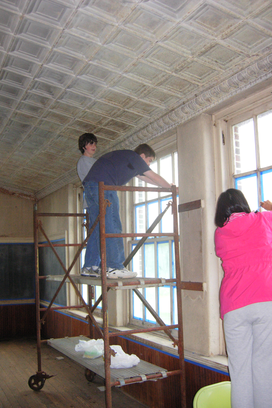 ![]() Wet sanding Mrs. Loftus & Andy | ![]() Ready to sand Nathan | ![]() Scraping complete Notice old school benches! |