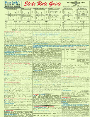 "Data-Guide" is a company in New York that created plastic laminated study guides for many, many subjects. They are still listed as a business (as of 2012) and in 2012 I received a return call from them. However, I was not home to receive the call, received no replies to subsequent calls, and they do not seem to be actively in business. In the 1950s and again in the 1970s they made study guides for the slide rule.