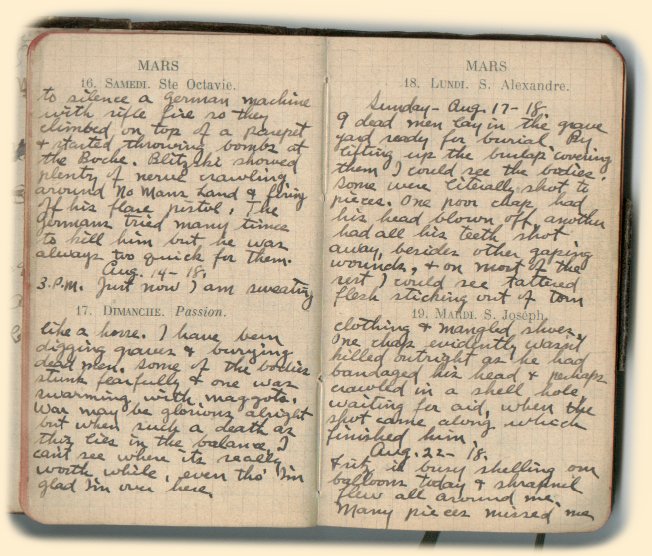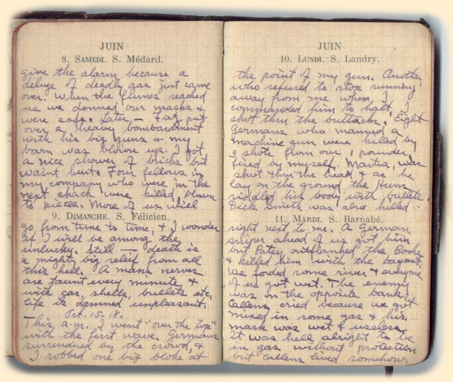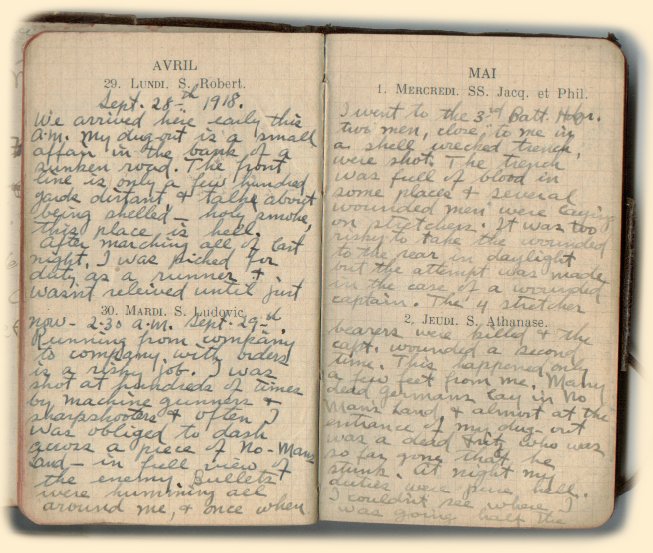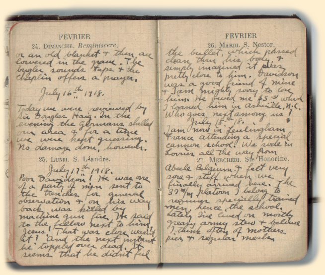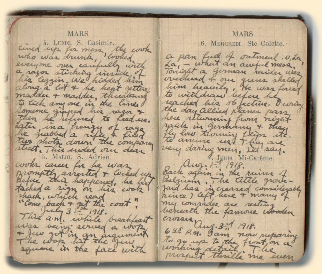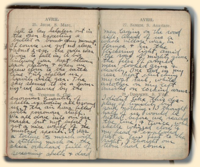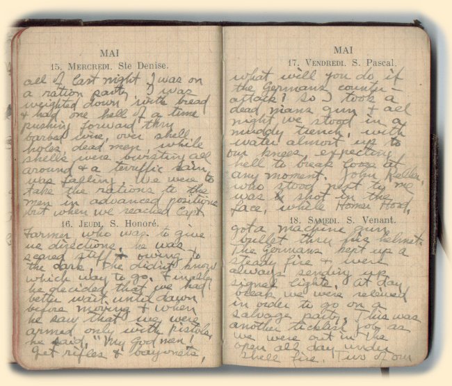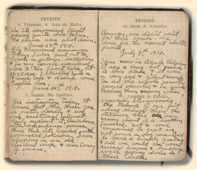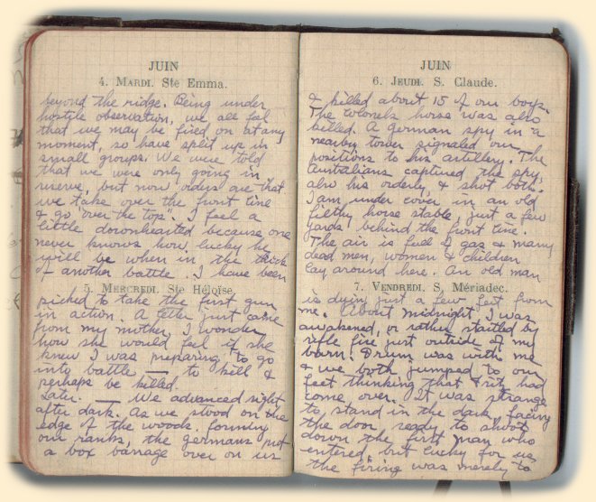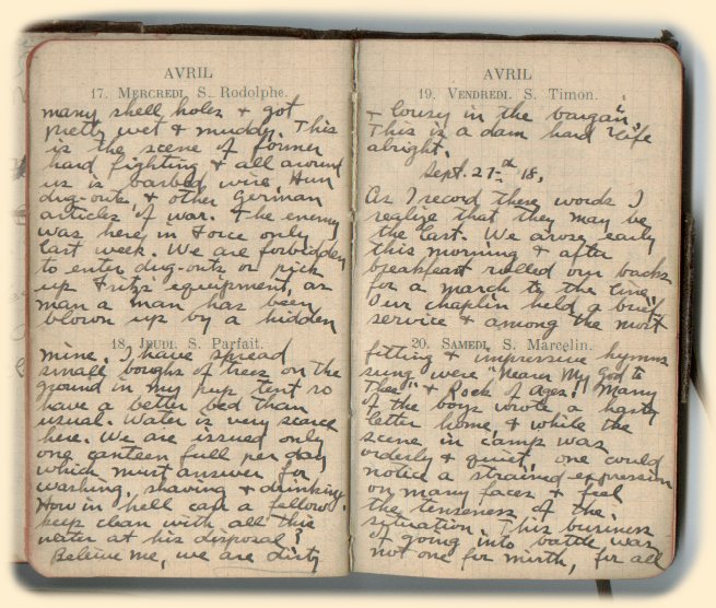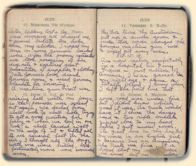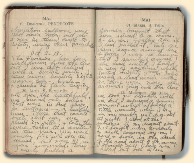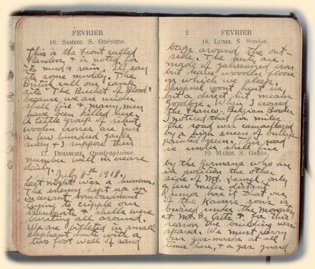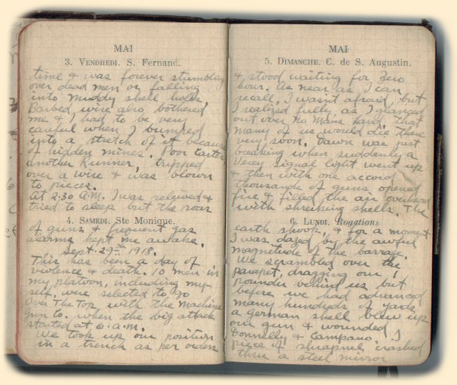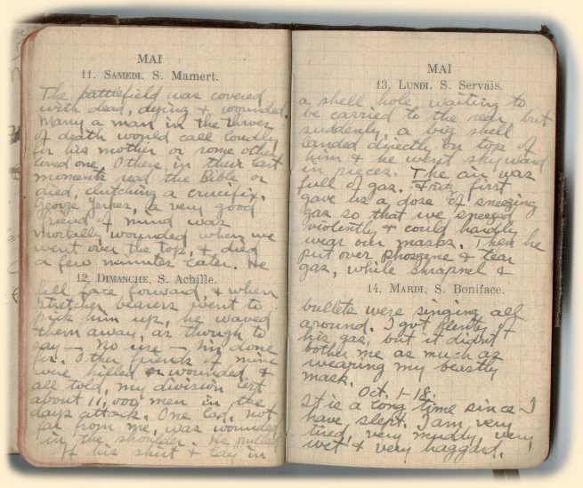 (Apologies for the rough formatting of this page. I'm clearly not a web designer and welcome ideas for improvement!) My mom, Evelyn Marvel (maiden name), had an Uncle Paul on her mother's side. When my Uncle Paul died one of his possessions was the diary you are about to read. My mom doesn't know who A. W. Miller is - distant relative, friend of Paul? A little genealogy is in order. I have had the diary since my teenage years, and hadn't read it probably since first receiving it. My 12 year old son (2006), however, loves history. He can't get enough of it. When he learned of the diary, he excitedly asked to read it. To better preserve it, though, we decided to carefully scan it in. The original scans are much larger than the ones shown on the following web pages. While Mr. Miller points out that this is a copy of his original diary, it seems that he copied it partway through his time in Europe. Later pages contain names and addresses written by people he met in France, and the names are mentioned in the next diary entry. So at least a portion of the diary must be original. But I can't help wondering if his first diary is the hands of a family in France... After scanning, I typed the script preserving linebreaks, misspellings, typos, and so on. I am all too human, however, and have probably introduced an error or two. Feel free to point any out that you discover! We are also very interested in any information that might tie other people to Mr. Miller, as well as any general comments or thoughts you might want to share. Thanks! |