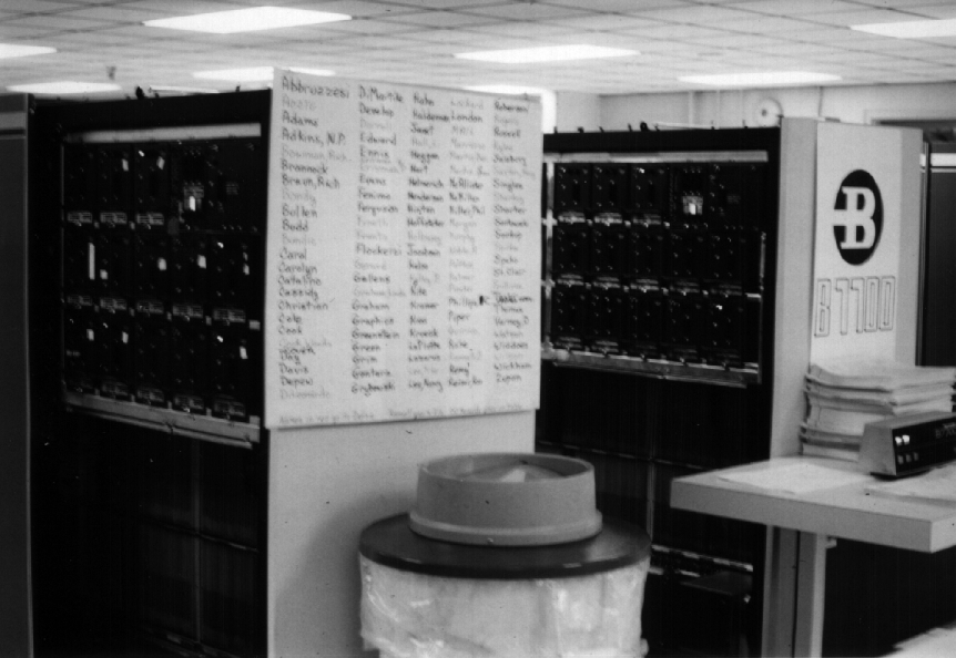 Behold the Burroughs B7700, the pinnacle of the University's computing empire. This system ran the MCP (Master Control Program) operating system and the CANDE (Command AND Edit, pronounced candy) combination shell and editor. Just about everything was programmed in ALGOL. But the most memorable feature of the B7700 was that it required you to set your terminal to "half duplex."
