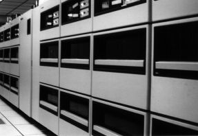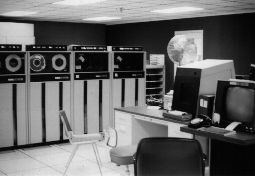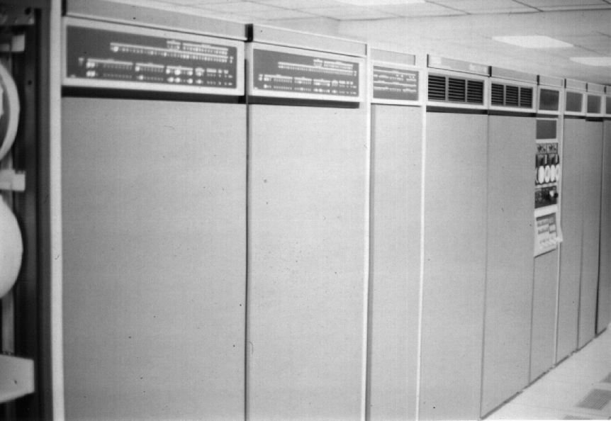 This is a picture of the DEC-10, a 36-bit computer which ran the TOPS-10 operating system. This machine was a favorite target of unauthorized hacking thanks to its familiar Digital-style command-line interface and lax security. Who ever would have thought it was so huge!