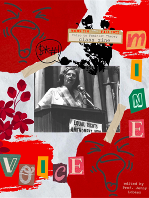 In WOMS 216: Introduction to Feminist Theory, Prof. Jenny Lobasz works with her students to create a class zine (a self-published magazine, pronounced like ZEEN). Featuring eclectic collages and heartfelt writing, the zines celebrate feminist theorists and illustrate the connections students make between course topics and their own lives.