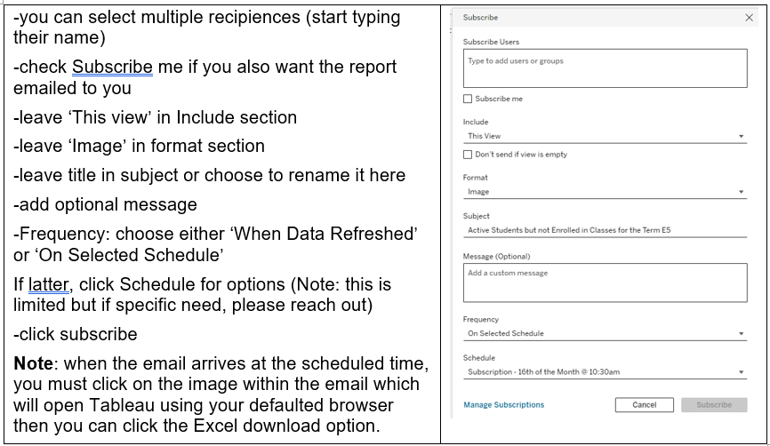 a. Access Tableau and click the report to run, as you would normally.