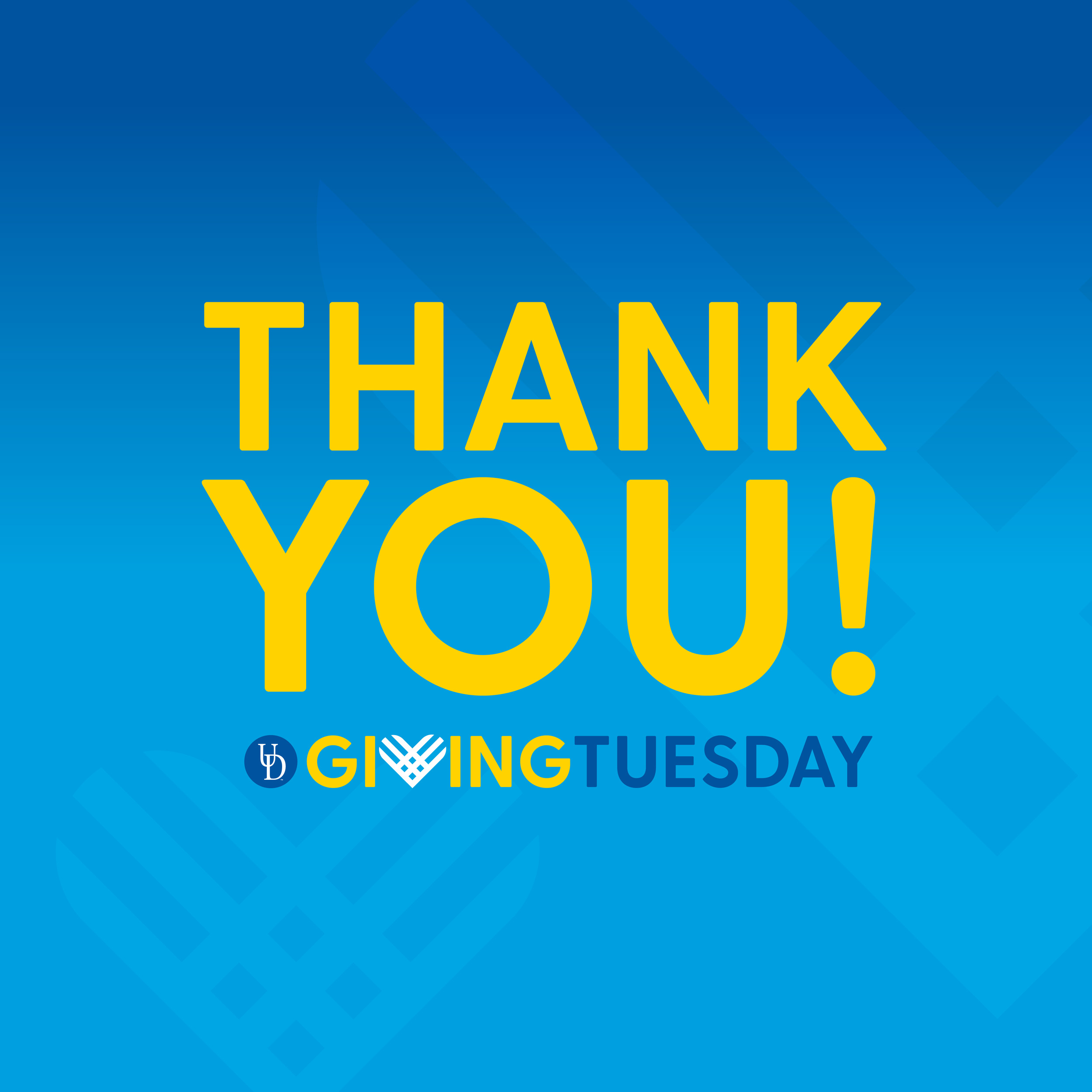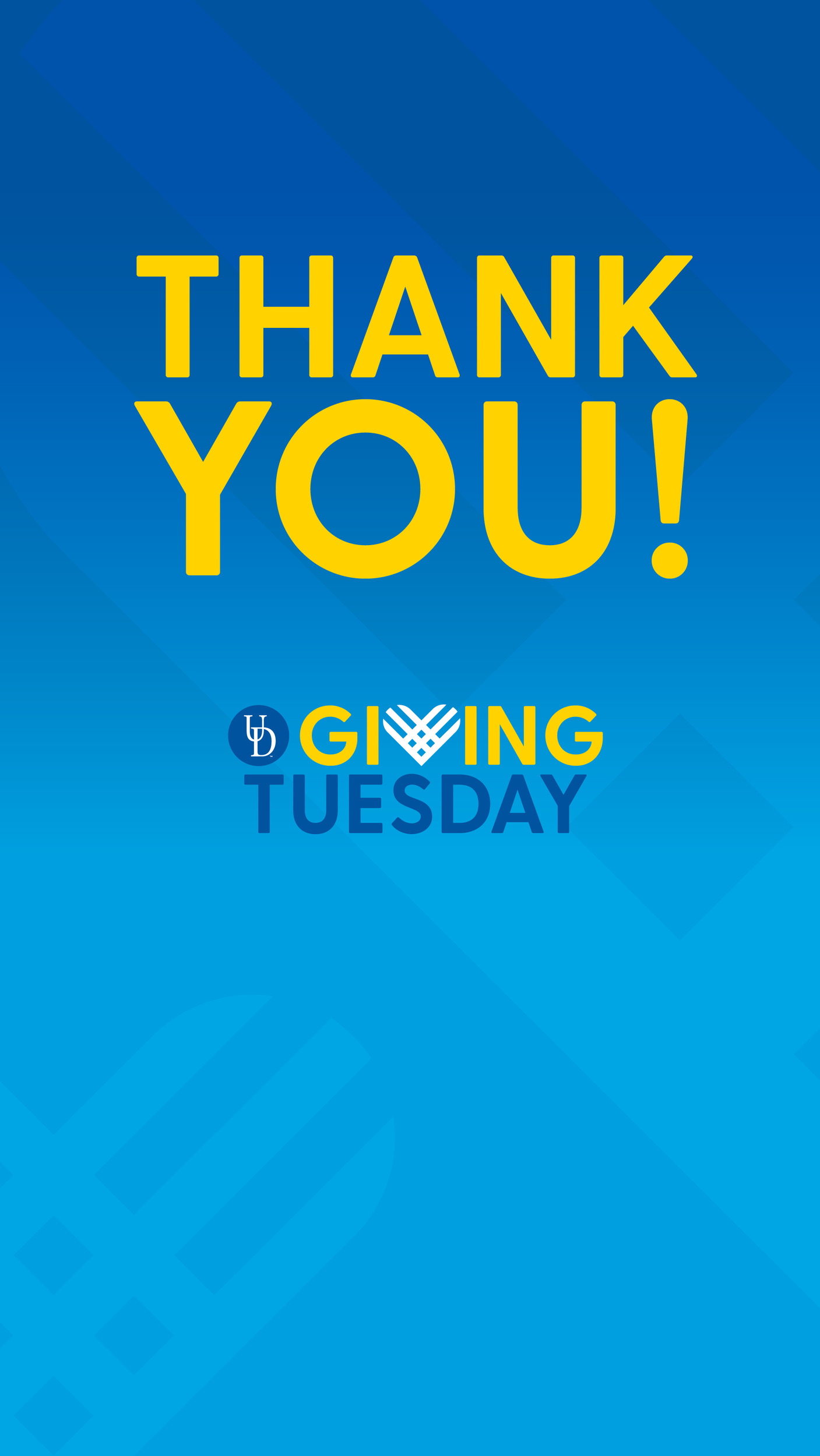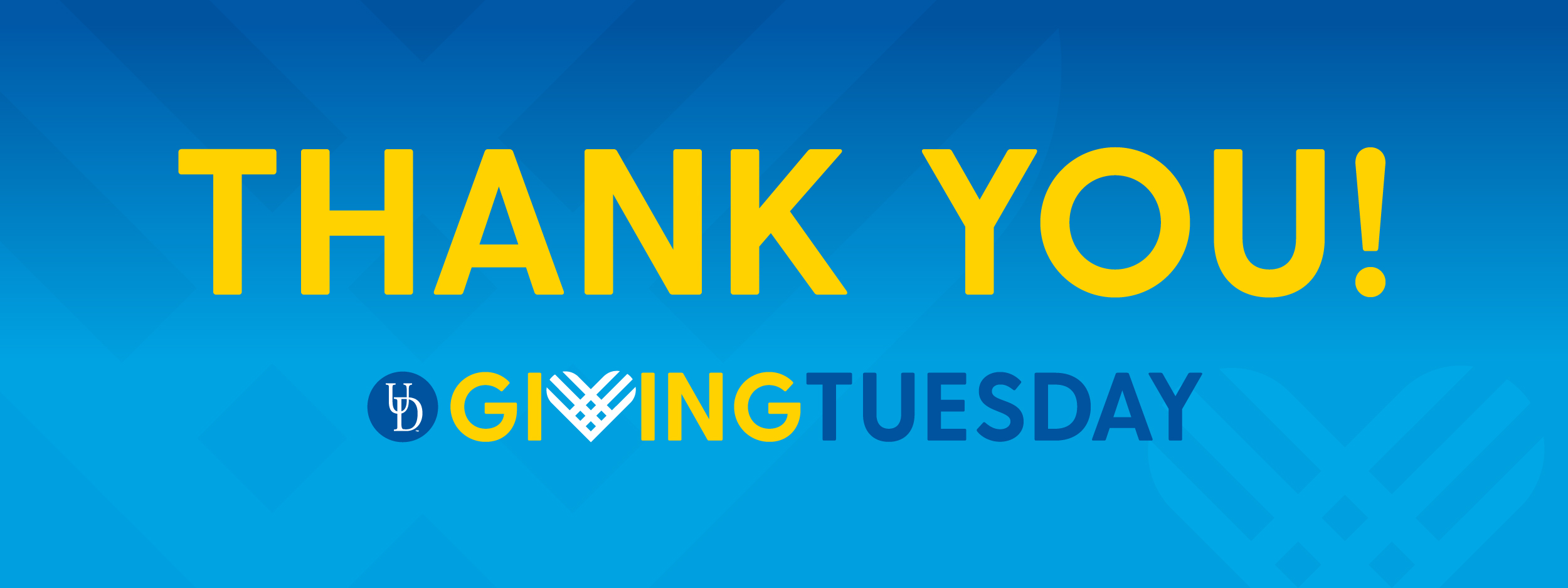 Thank you to all who supported <project name OR projects in COLLEGE/UNIT name> on #GivingTuesday! We are so grateful for your generosity! You can see our progress and–if you still didn't get a chance–make your gift. (use specific project link or www.udel.edu/givingtuesday)