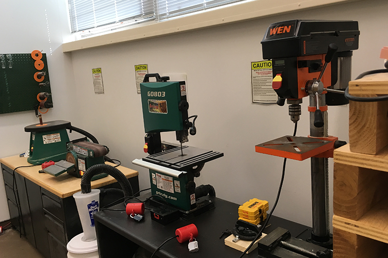 The Department of Art & Design Maker Studio is an integral component of the Studio Arts Building. It's a classroom and maker space for students enrolled in a related course or program. The studio is a flexible maker space with digital and traditional fabrication tools and equipment, physical computing (electronics) materials and tools, robotics equipment, tables and stools for working.