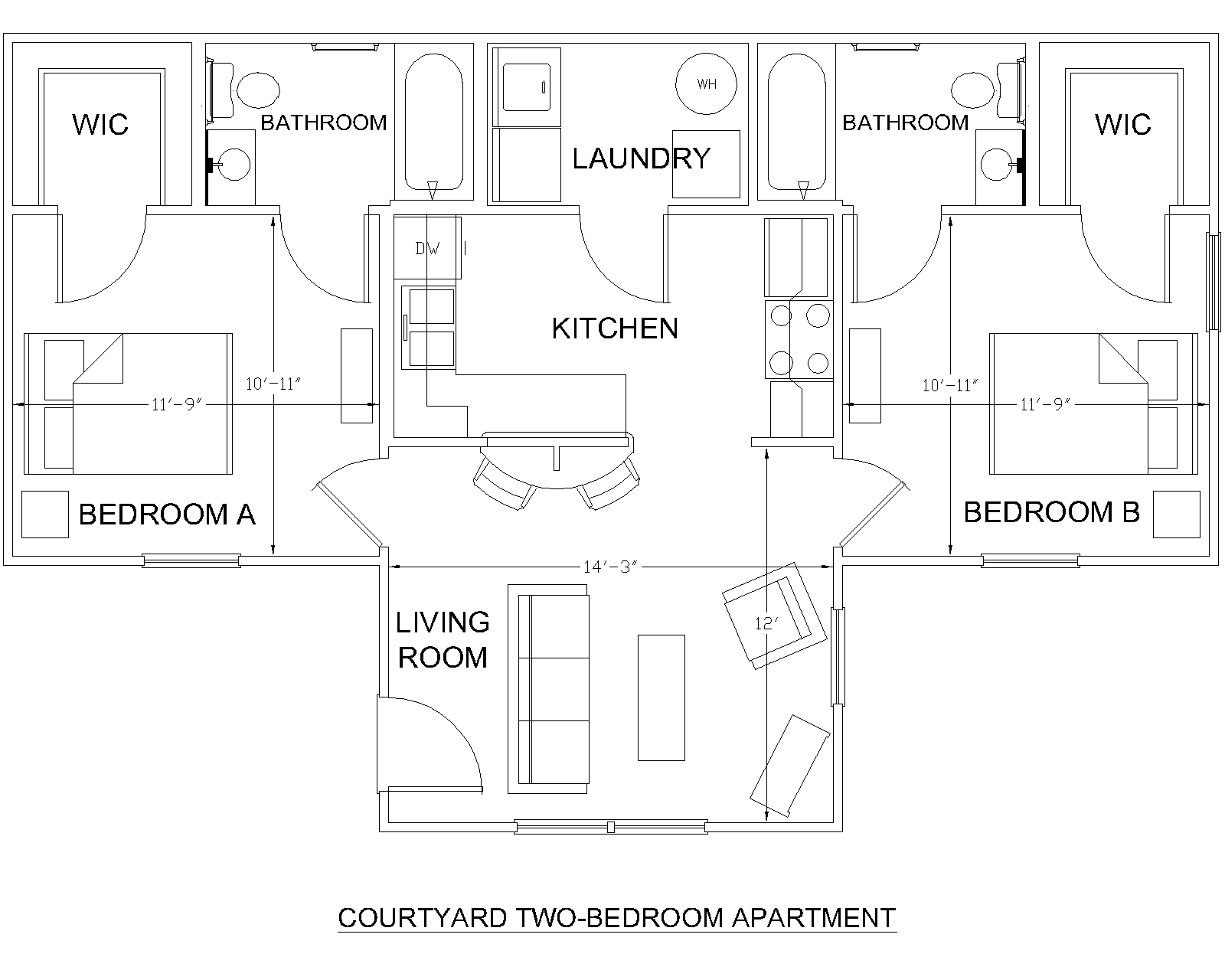 If offered a space, graduate housing is offered for one year only and is located in our University Courtyard Apartments.