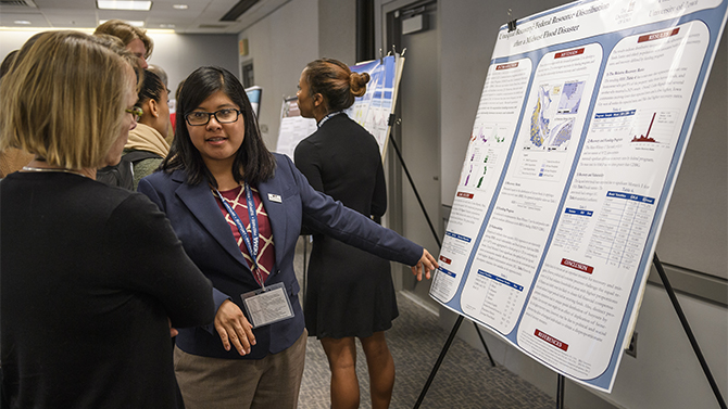 The students heard from a panel of practitioners, learned about interdisciplinary collaboration and funding opportunities at the National Science Foundation, participated in roundtables on internships and community engagement and experienced training on quick-response research.