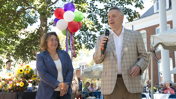 It was the first Taste of Newark festival for UD President Dennis Assanis and his wife, Eleni, who were guests of honor at the event. Newark Mayor Polly Sierer welcomed them, and they both thanked the University and Newark communities for the warm welcome.
