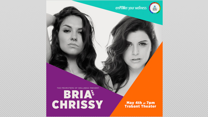 The University of Delaware Wellness Speaker Series will be finishing the spring with a program by musical duo BriaAndChrissy on Thursday, May 4.