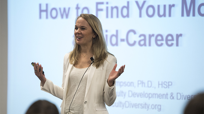 Thompson’s presentation covered many aspects of the NCFDD’s core curriculum, focusing in particular on challenges faced by associate professors as they navigate mid-career terrain. Central to the workshop was a message of identifying the pathway and career development that is right for you.