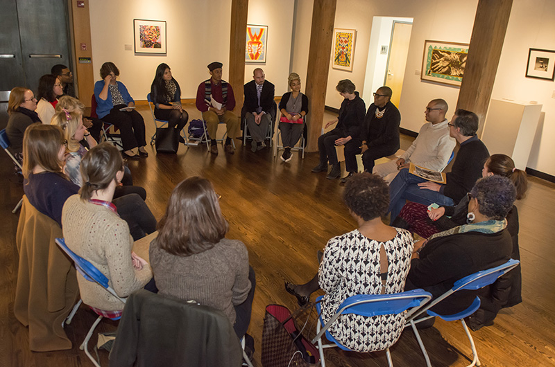 The workshop was held in Mechanical Hall Gallery, which houses the Paul R. Jones Collection of African American Art and, through May 12, the exhibition “So What Have We Learned: Black Visual Cultures @ UD.”