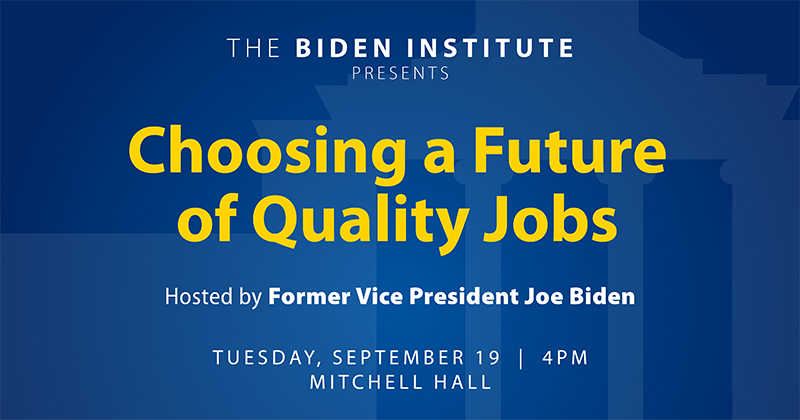 The Sept. 19 roundtable is the kick-off event for the Biden Institute’s semester-long policy focus on jobs and the economy, which is expected to conclude with the release of proposed policy solutions.