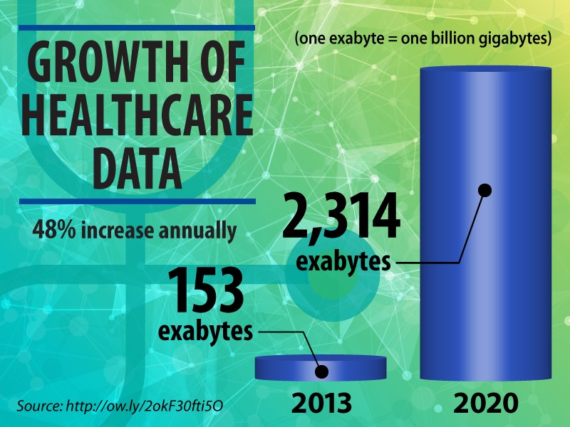 By 2020, the amount of patient health data is expected to total 2,314 exabytes. That’s the data equivalent of the entire Library of Congress more than a million times over.