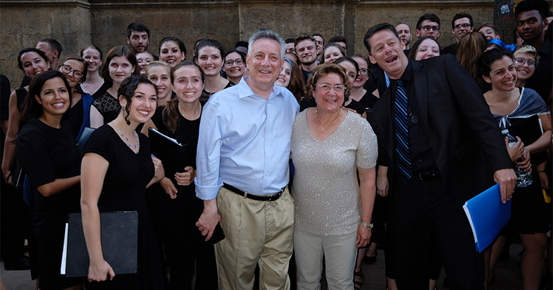 In support of the program, UD President Dennis Assanis and his wife, Eleni, paid a visit to the Choral Academy in Aix-en-Provence. “Music and the arts are among our critical educational priorities at the University,” Assanis said. “It has been truly rewarding to see the momentum we are gaining through programs such as the Choral Academy. This applies not only to the enriching educational experience for our students but also the opportunity to connect the University of Delaware with international audiences. We are growing our footprint beyond UD, and we are so grateful for the support we receive from our beloved alumni and friends of the University.”