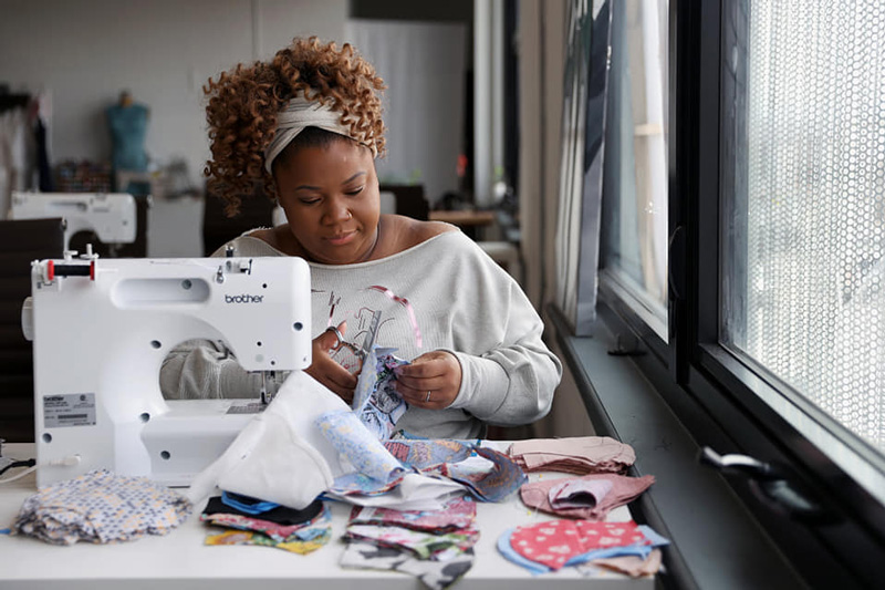In the first two weeks of switching her business from helping budding fashion entrepreneurs to helping healthcare workers stay safe, Hudson sewed 500 masks herself and helped facilitate the donation of 4,000 more to five Philadelphia-area hospitals. In addition to spending her days sewing masks, she creates mask sewing kits for other volunteers, hosts virtual mask sewing classes and handles coordinating and filling the daily requests from individuals and hospitals.