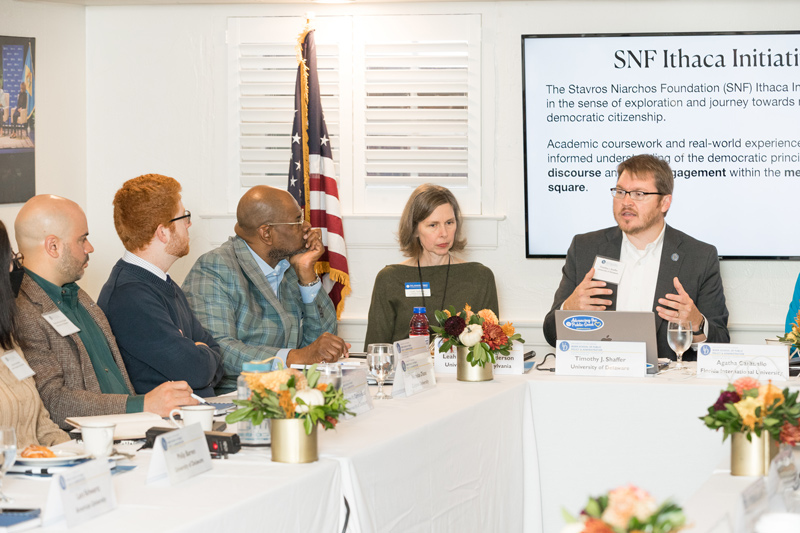 The Stavros Niarchos Foundation (SNF) Ithaca Initiative in the University of Delaware’s Joseph R. Biden, Jr. School of Public Policy and Administration is addressing this concern by assembling academic leaders to develop effective programming and teaching that encourages students to be responsible, engaged citizens.