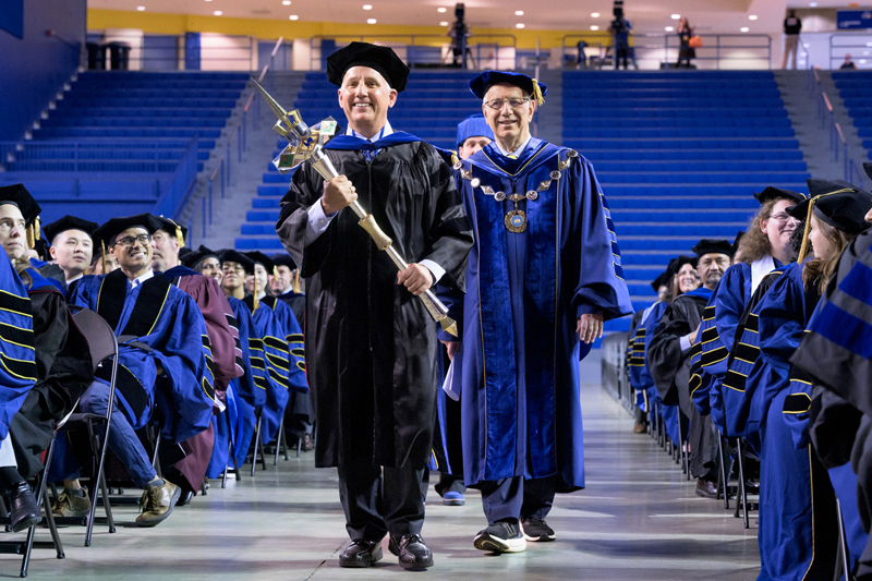 “I am honored to play a small part in this incredible moment of your lives,” UD Provost Laura Carlson said. “I love the Commencement ceremonies and their fanfare — the bagpipe music, the procession, the colorful robes, the caps and, of course, the coveted doctoral hoods that you have worked so hard to receive.”